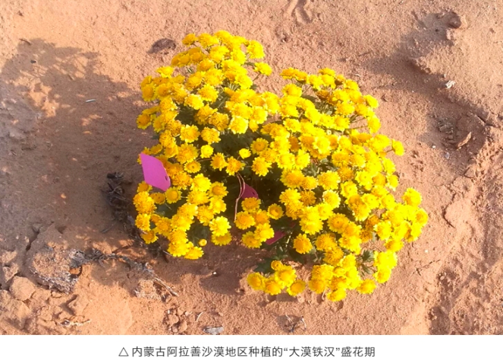 “大漠鐵漢”是公司近年來在抗逆植物培育技術(shù)體系領域取得的又一重大進步,將進一步增強公司在荒漠化治理領域?qū)嵙?,積極拓展公司綜合解決方案適用范圍。如,未來可在阿拉善地區(qū)及其他荒漠地區(qū)進行推廣應用,促進荒漠地區(qū)生態(tài)恢復,助力鞏固和發(fā)展“綠進沙退”的良好勢頭。此外,“大漠鐵漢”花色金黃,可作茶用及藥用且具備較強觀賞性,如在沙漠地區(qū)進行產(chǎn)業(yè)化栽培應用,發(fā)展配套工藝進行采摘并生產(chǎn)相關產(chǎn)品或開發(fā)精品盆栽進行銷售,可提高當?shù)刂紊尘C合效益,進一步促進區(qū)域經(jīng)濟社會高質(zhì)量發(fā)展。