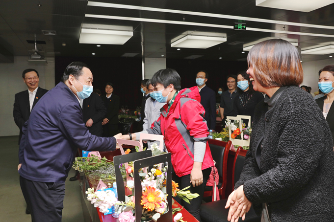 調研中,適逢三八國際婦女節(jié),郝鵬看望慰問了正在聽插花講座的企業(yè)女職工,向大家致以節(jié)日的祝賀和美好的祝福。