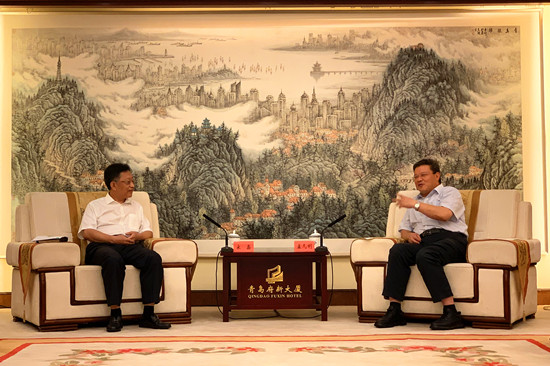 8月11日,集團(tuán)公司黨委書(shū)記、董事長(zhǎng)宋鑫拜會(huì)青島市委副書(shū)記、市長(zhǎng)孟凡利。
