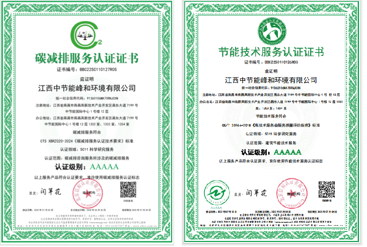 緊扣國家雙碳戰(zhàn)略,積極探索節(jié)能降碳服務(wù)。成立伊始,峰和公司就緊緊圍繞國家雙碳戰(zhàn)略,積極切入雙碳和節(jié)能服務(wù)兩大業(yè)務(wù),確立以“研究、咨詢、合作、交流”為基本定位,在打造綠色制造樣板區(qū)、零碳產(chǎn)業(yè)示范區(qū)方面提供技術(shù)支持,深化開展與中國人民大學、南昌大學等知名高校在GEP核算、ESG管理和生態(tài)產(chǎn)品價值實現(xiàn)等方面的合作,在人才隊伍、雙碳資質(zhì)、業(yè)務(wù)開發(fā)、生態(tài)系統(tǒng)和課題研究等五大方面積極發(fā)展新質(zhì)生產(chǎn)力。截至目前,公司累計申請并獲得資質(zhì)證書總共17類25個,其中包括8項國家認監(jiān)委頒發(fā)的體系認證、15項國家級委員會備案的專業(yè)資質(zhì)證書以及2項江西省環(huán)境保護產(chǎn)業(yè)協(xié)會評定的服務(wù)能力證書;新簽訂和實施的項目合同金額兩千多萬元,實現(xiàn)了從“0”到“1”,從“1”到“10”的跨越式發(fā)展,在江西省域內(nèi)的雙碳和節(jié)能服務(wù)方面贏得了市場口碑,具有較大的市場影響力。