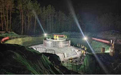 為確保首臺風機基礎澆筑順利完成,廣西公司以起跳之勢抓推進,以奔跑之速抓落實,搶抓施工關(guān)鍵期,提前謀劃部署,定期召開工程例會及專題協(xié)調(diào)會,嚴格執(zhí)行相關(guān)技術(shù)方案與施工標準,嚴把施工質(zhì)量,認真梳理工程建設過程中的安全隱患,壓實安全責任。項目部專門成立混凝土澆筑小組,明確人員分工,多次考察商砼站,確?;炷凉皶r可靠。提前編制大體積混凝土施工專項方案,對參建人員進行安全技術(shù)交底,對混凝土澆筑、養(yǎng)護等細節(jié)進行周密安排,全力以赴為年度并網(wǎng)投產(chǎn)目標保駕護航。