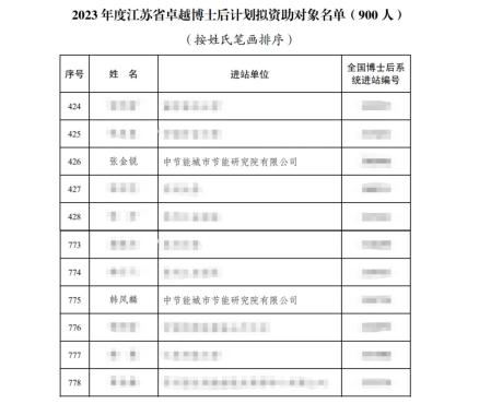 節(jié)能科技下屬研究院兩位博士入選2023年度江蘇省卓越博士后計劃