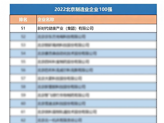 新時(shí)代集團(tuán)所屬健康產(chǎn)業(yè)公司榮登“2022北京制造業(yè)企業(yè)100強(qiáng)”榜單 |