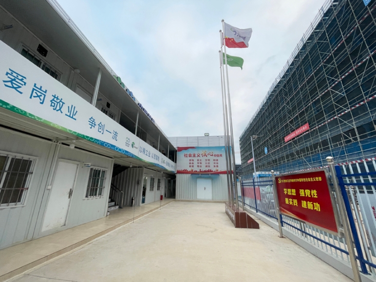 安全為基,質(zhì)量為要,生產(chǎn)進(jìn)度有保障。“黨建+安全生產(chǎn)”,筑牢生產(chǎn)紅色“防護(hù)網(wǎng)”。項(xiàng)目部充分利用工地宣傳欄、宣傳橫幅及相關(guān)展板等開(kāi)展安全宣傳教育。“三雙筷子三只碗,妻兒盼你平安歸”、“誰(shuí)主管、誰(shuí)負(fù)責(zé),誰(shuí)在崗、誰(shuí)負(fù)責(zé)”、“勤查勤檢,消除隱患,常抓不懈,防微杜漸”......在項(xiàng)目建設(shè)現(xiàn)場(chǎng),藍(lán)網(wǎng)覆蓋的廠房上掛著一條條醒目的安全標(biāo)語(yǔ),“我們項(xiàng)目工期非常緊張,但是安全第一,質(zhì)量第一的原則不會(huì)改變?!表?xiàng)目負(fù)責(zé)人介紹到,他們嚴(yán)抓安全生產(chǎn),強(qiáng)化職工安全質(zhì)量教育,在項(xiàng)目一線(xiàn)營(yíng)造安全不松懈、全力以赴保質(zhì)量的良好氛圍,確保項(xiàng)目在安全的前提下保質(zhì)保量完成。