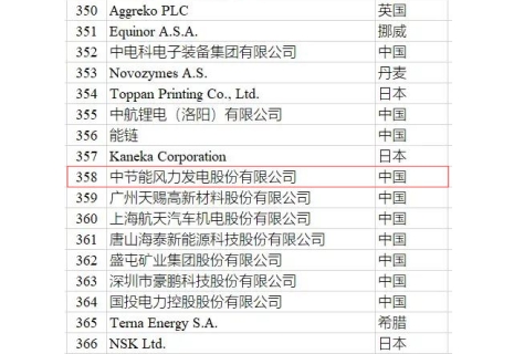 風(fēng)電公司入圍2021年全球新能源企業(yè) 500強(qiáng)企業(yè)榜單
